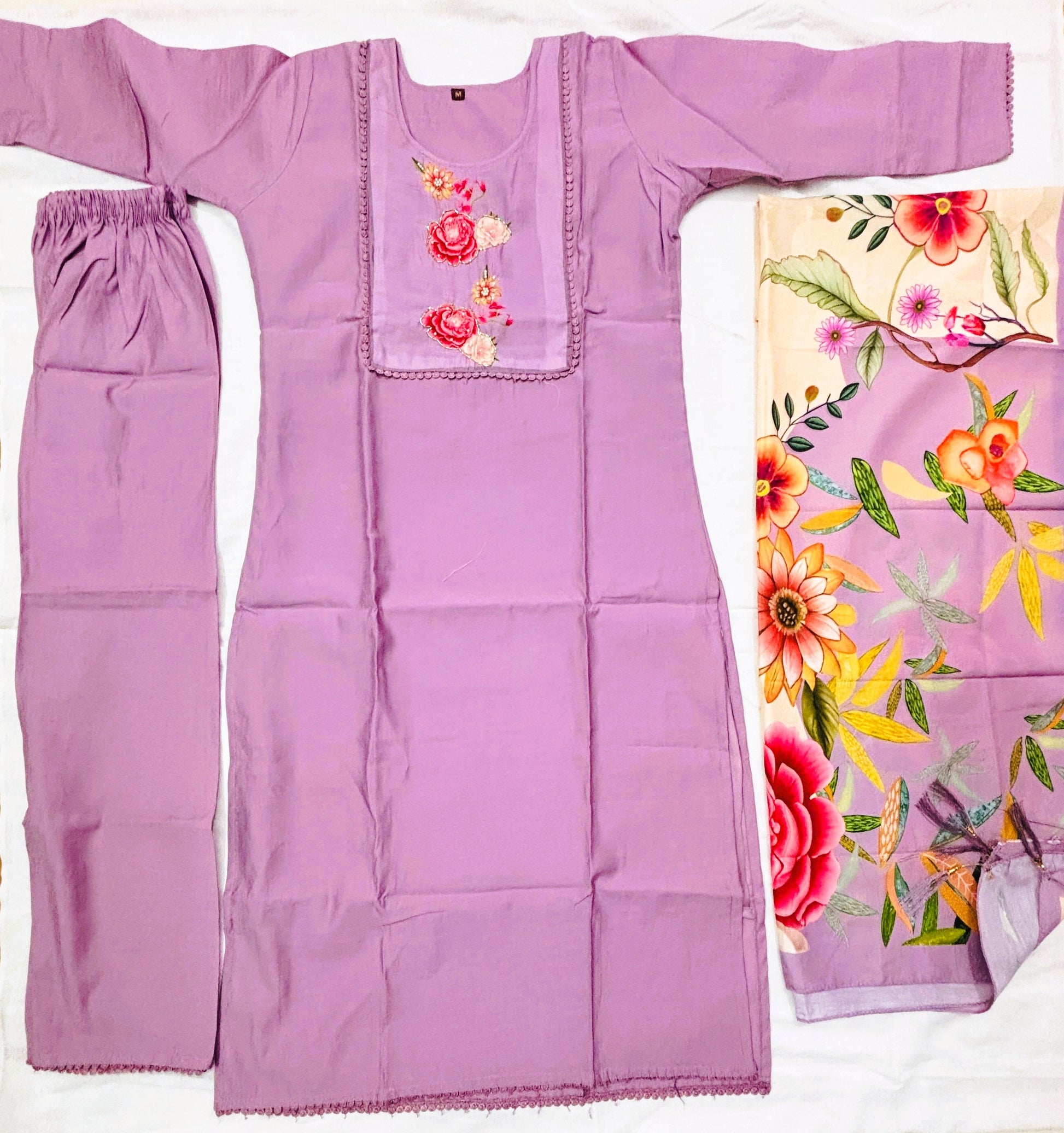Roman Silk with Muslin Dupatta 3 Piece Set-VLFRS01